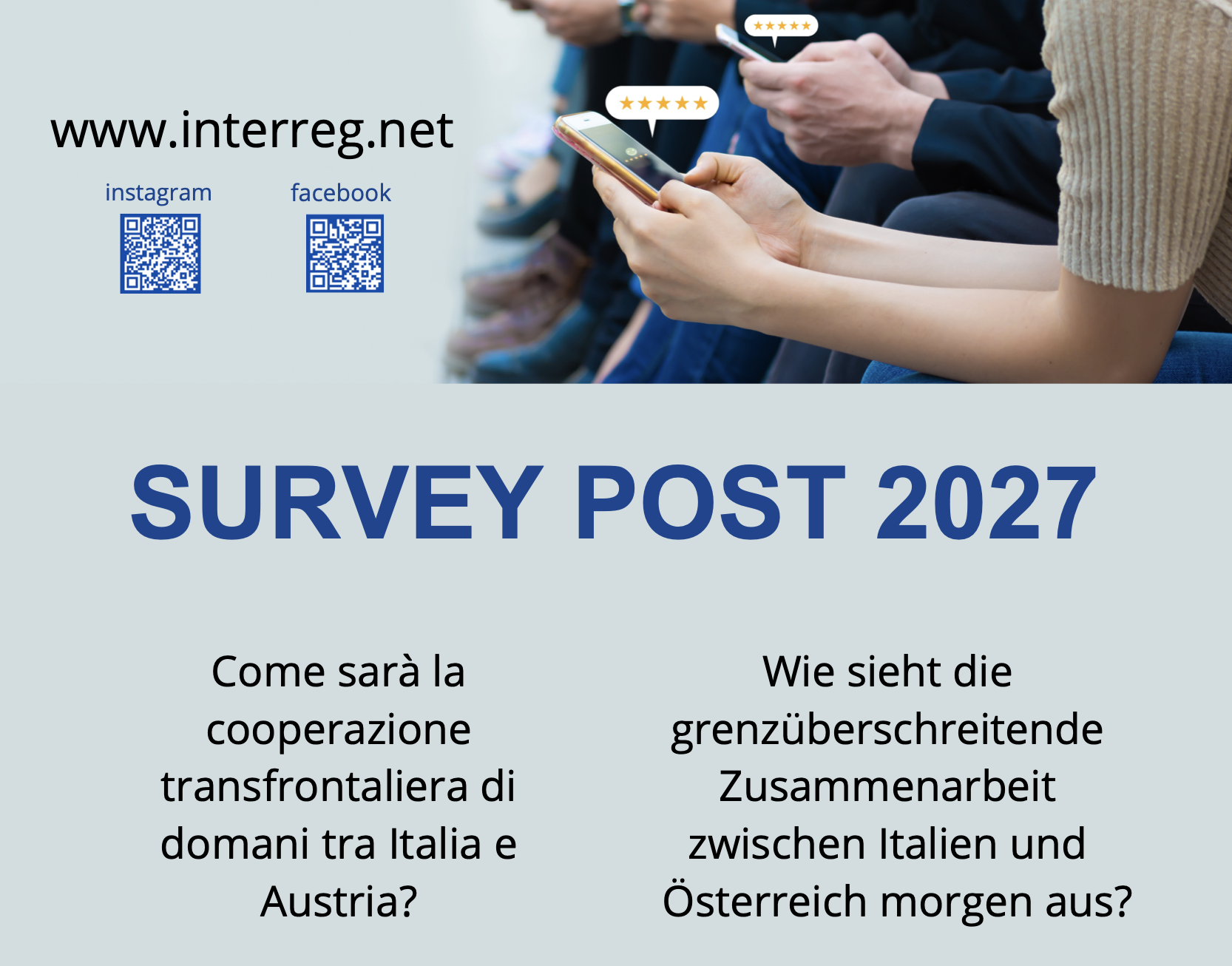 Nimm an der Interreg-Umfrage teil und gestalte die Zukunft der grenzüberschreitenden Zusammenarbeit nach 2027! Das Interreg-Programm Italien-Österreich führt derzeit zwei Umfragen durch, um Meinungen, Überlegungen und Vorschläge von jungen Menschen einerseits und Stakeholdern in der grenzüberschreitenden Region zwischen Italien und … Weiterlesen